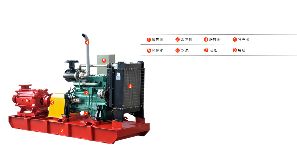 5.直連式:360kw以下柴油水泵機組采用國內*的柴油機與水泵通過彈性聯軸節直接連接技術,減少了故障點,并使機組的起動時間大大縮短,增加了機組的可靠性和應急性能;
