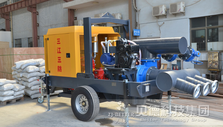 防汛排澇移動泵車采用一臺柴油發動機同軸拖動一臺水泵的一體化設備同時安裝有兩輪或者四輪的實心輪胎以及澳洲標準的牽引裝備,收到險情求助信息后就能快速響應,將泵車連接至汽車上,快速到達受災現場開始排水作業,還能有效解決搶險救災活動中經常遇到的進入困難、作業面狹窄、多種作業并行等多種難題。