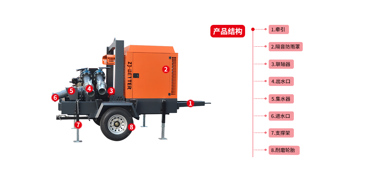 2、自吸時間短,出水流量大,機動性強,能適應(yīng)各種氣候環(huán)境。